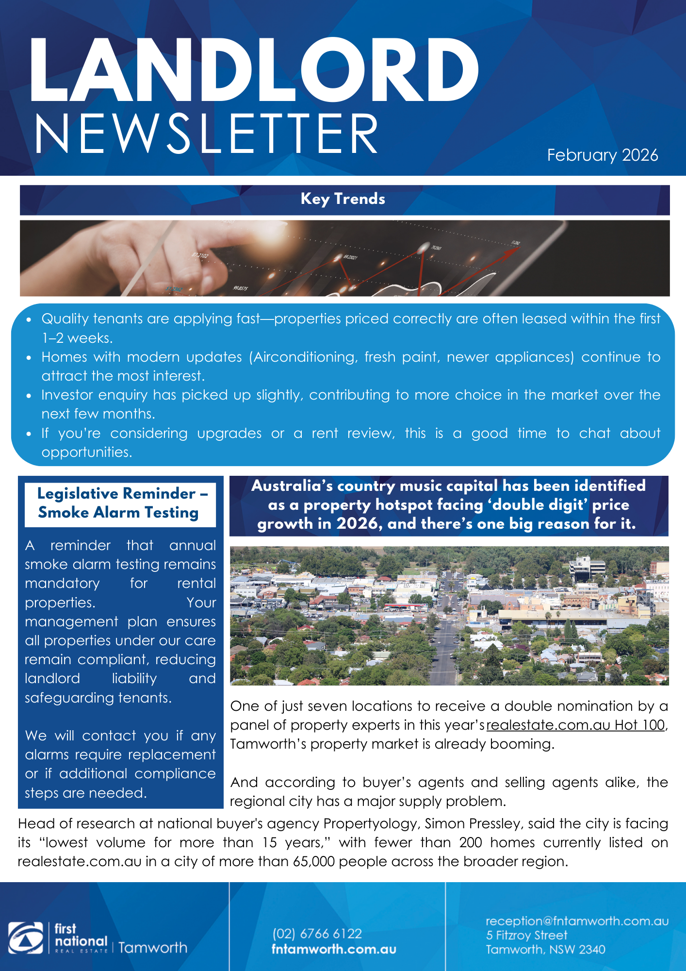 As a tenant, it was a pleasure to work with First National as they took care, of not just the landlord's interests, but also dealt with us (the tenants) amazingly. It was a first for me.