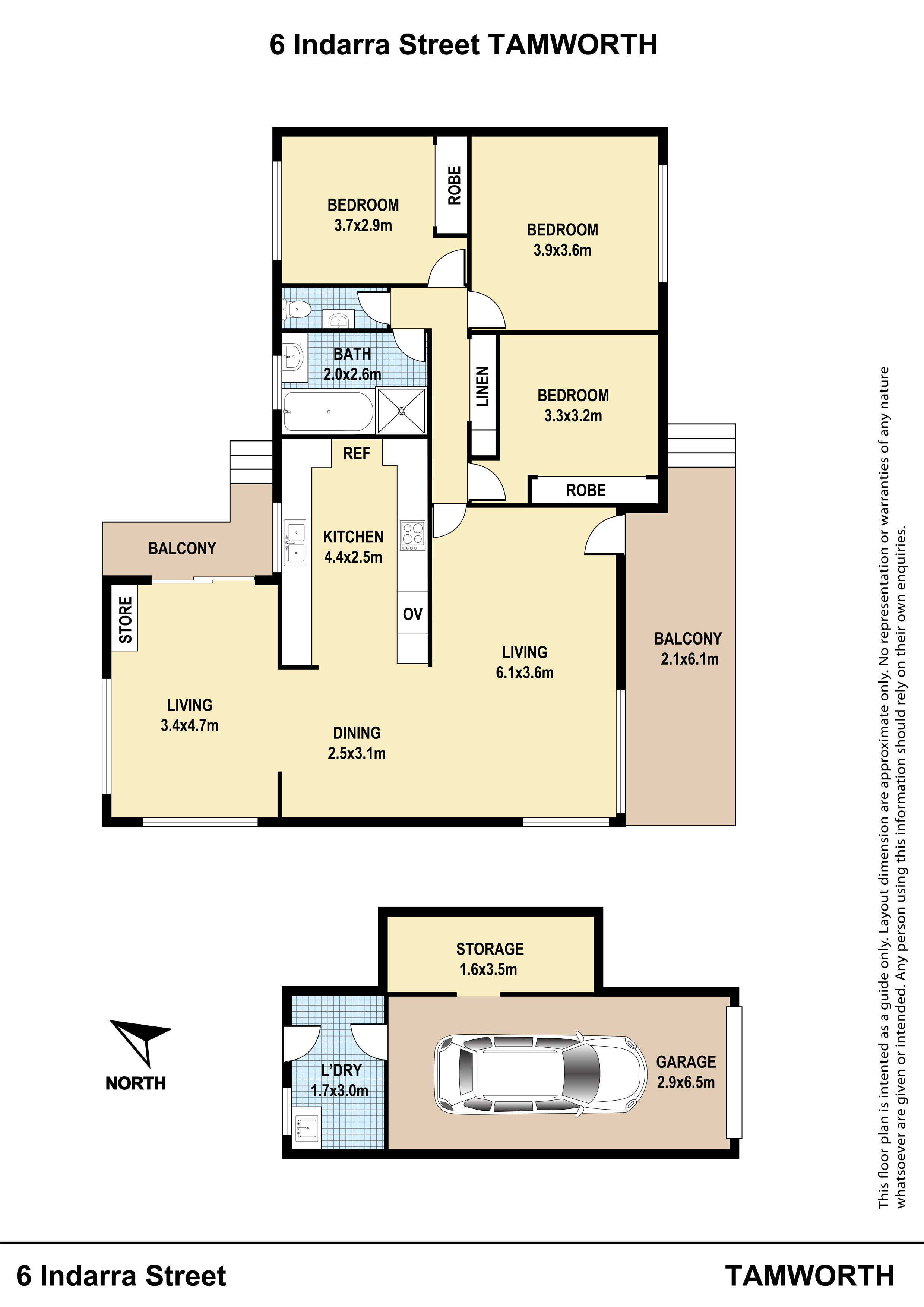 • 3 Bedrooms – built in robes in 2 rooms.