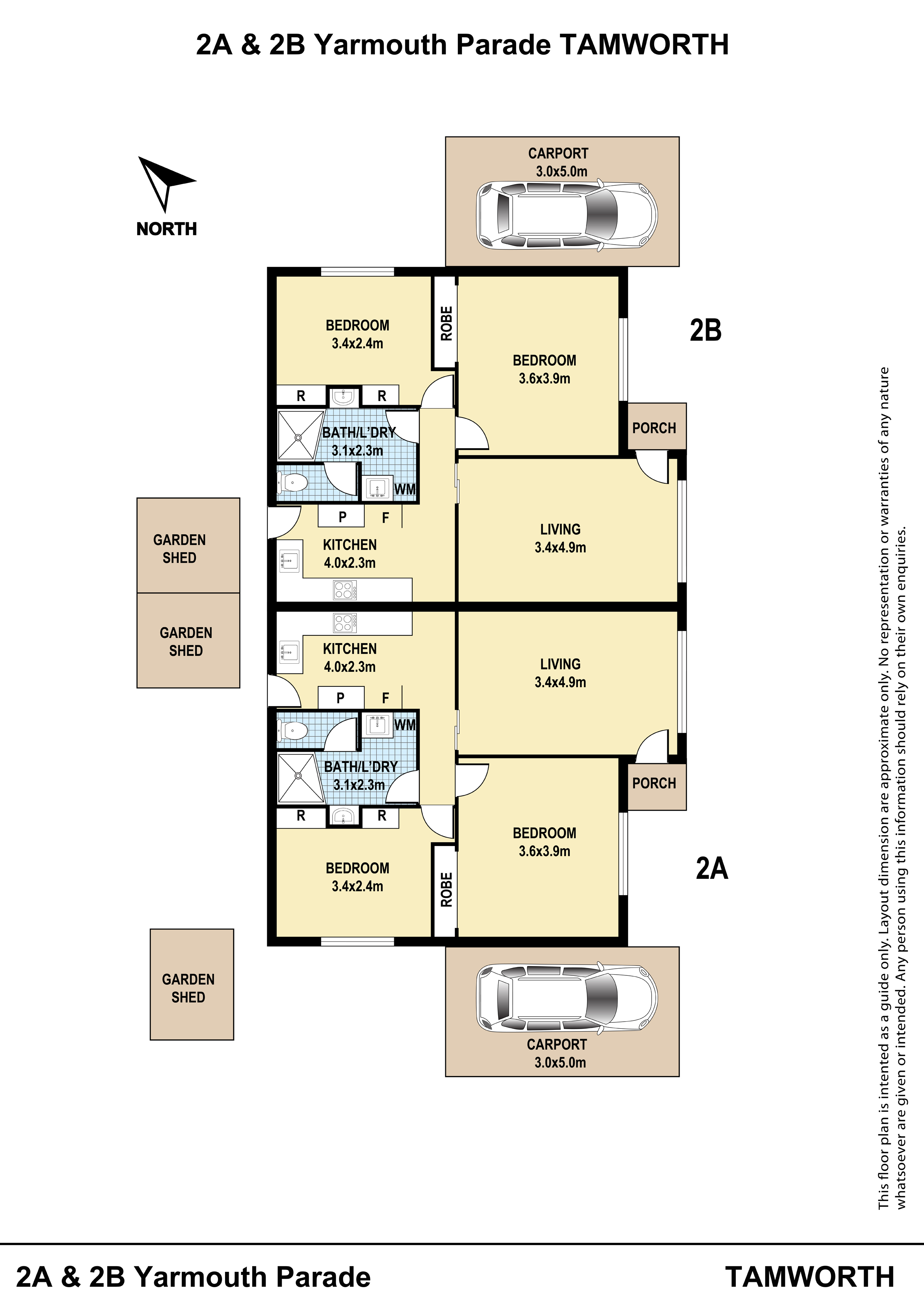 • 2 x 2 Bedroom brick duplex.