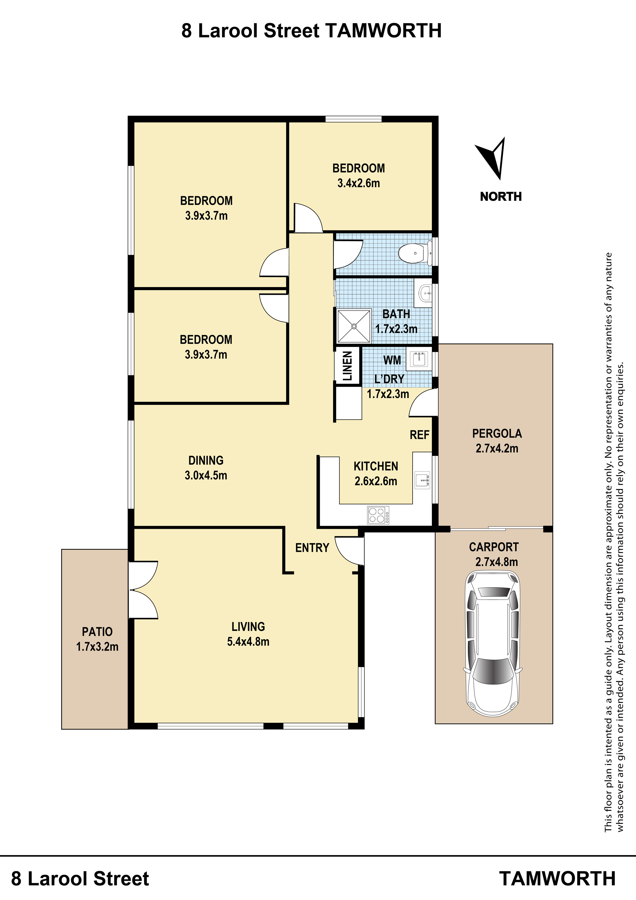 • Single level 3 bedrooms all with built in robes.