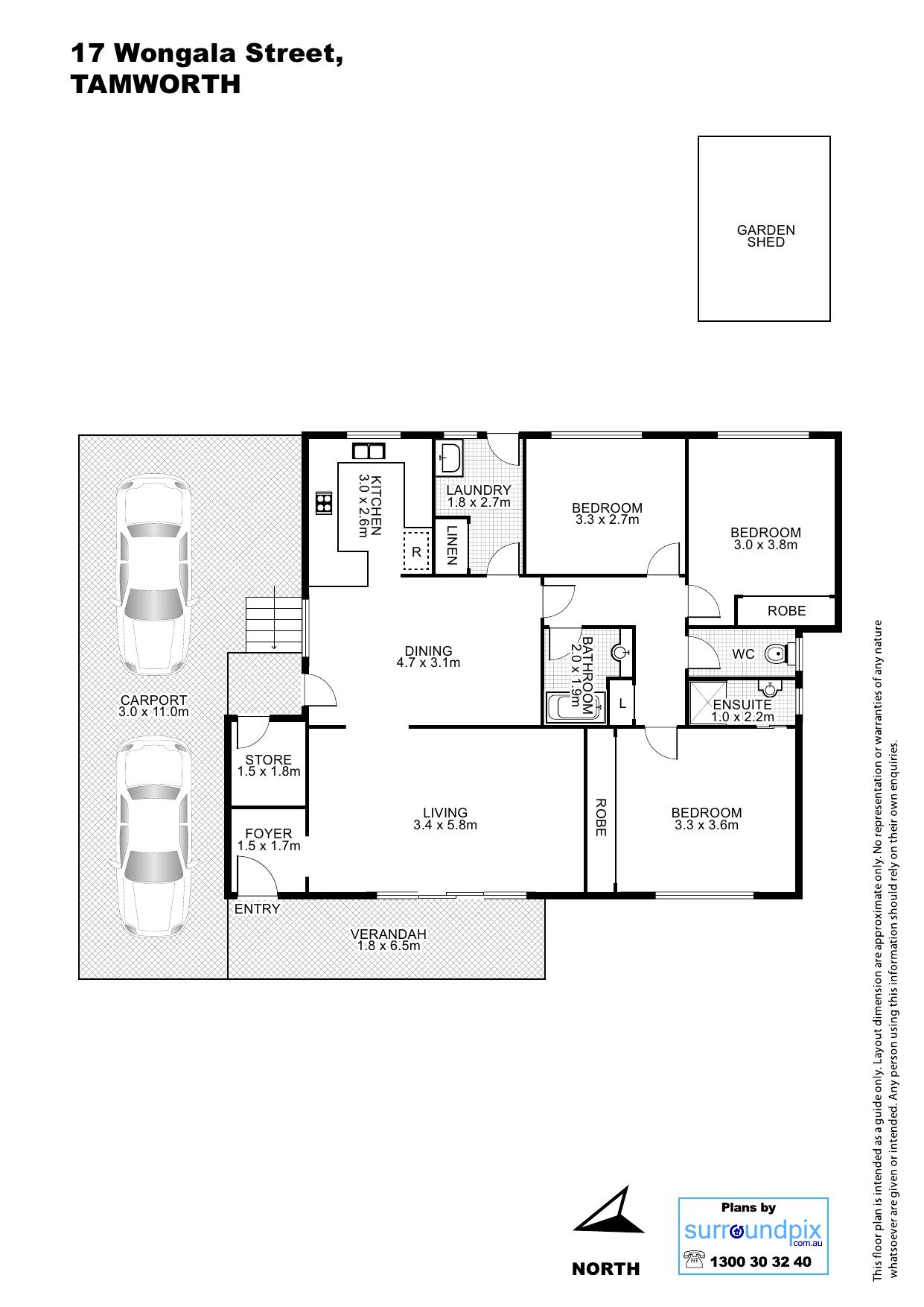 • Tandem carport with vehicle access entry to rear yard