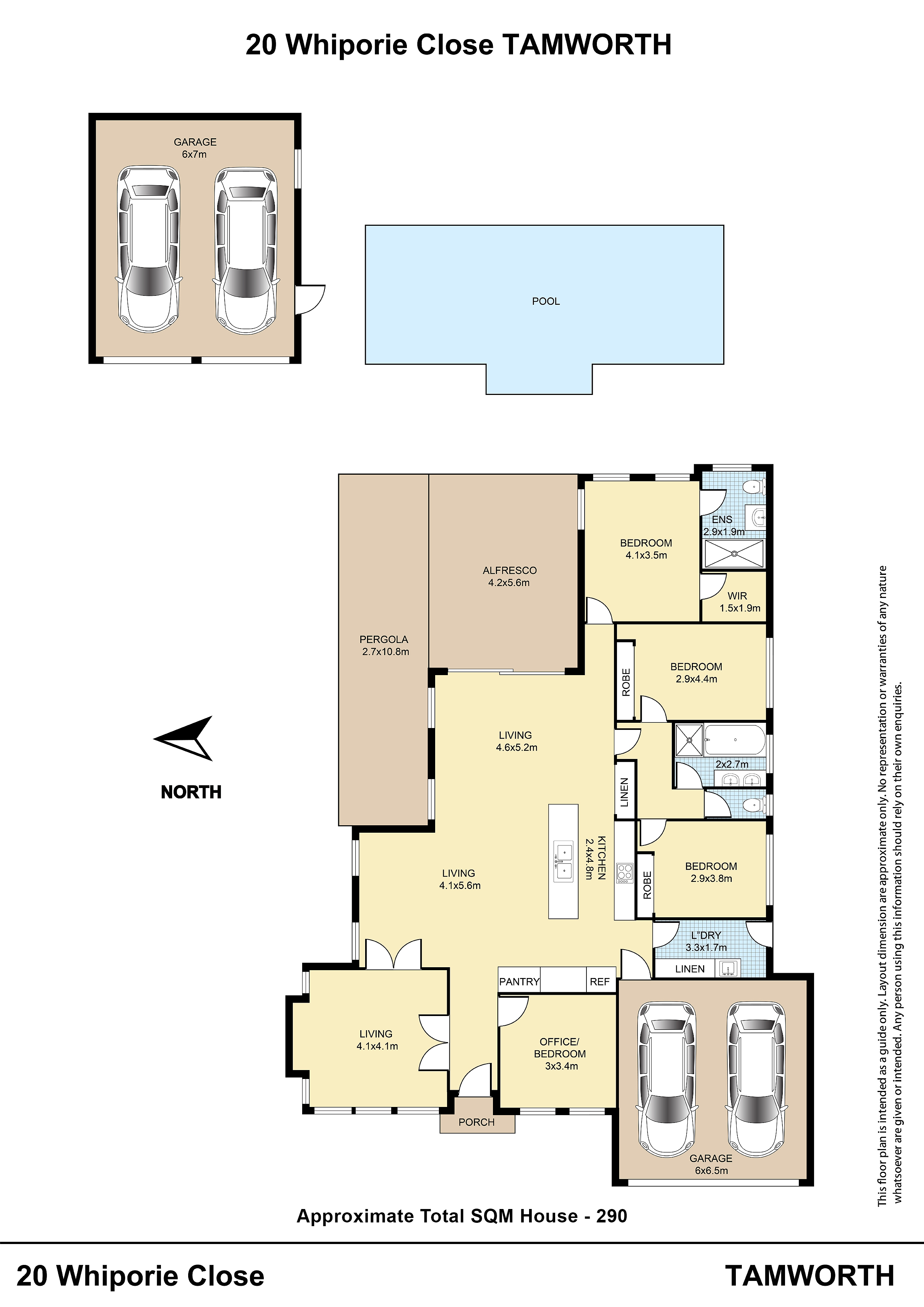 • Pool is approx 10 x 4 mtrs with with solar heating, has own pump house off the shed & includes the automatic pool cleaner